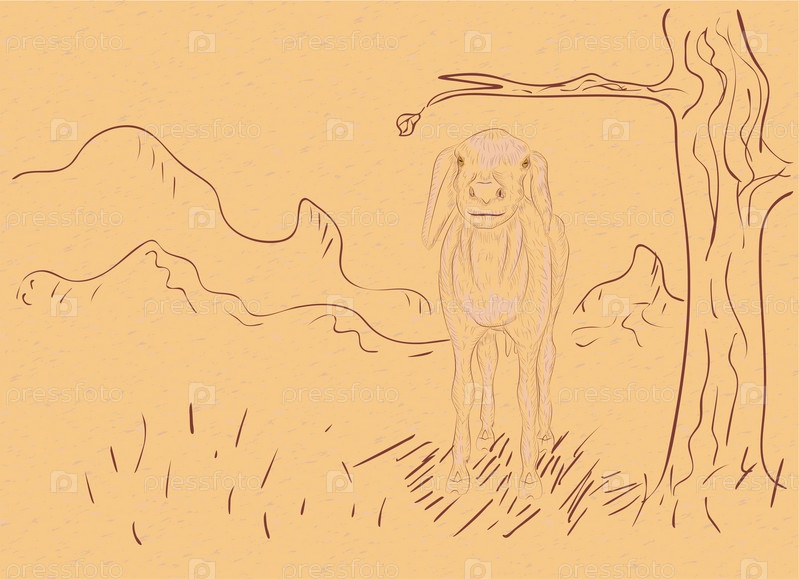 Сельский пейзаж с овцой