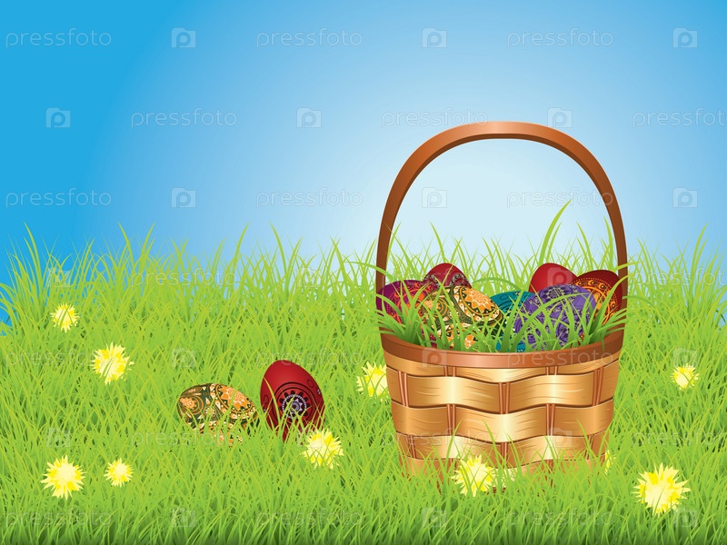 Пасхальная корзинка на лужайке