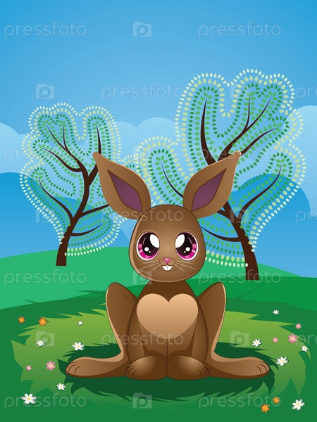 Коричневый кролик на лужайке