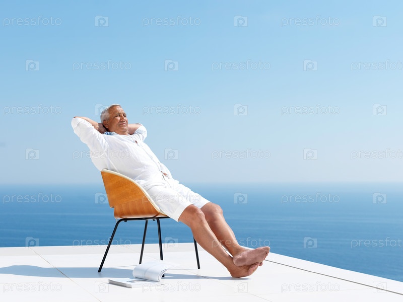 Пожилой мужчина, сидящий на балконе
