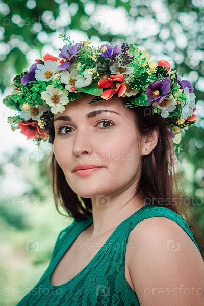 Портрет красивой женщины среди цветов