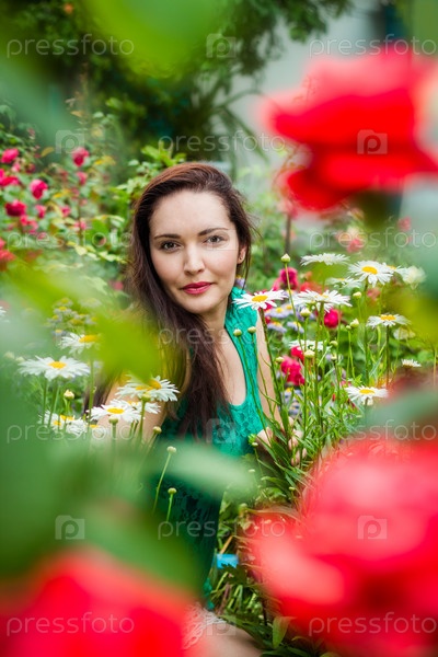 Портрет красивой женщины среди цветов
