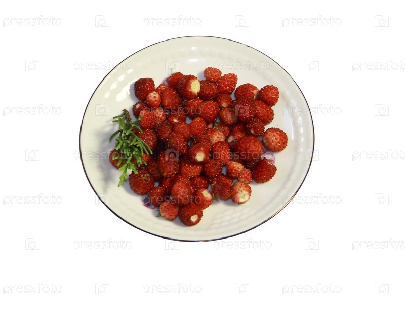 Тарелка с земляникой на белом фоне