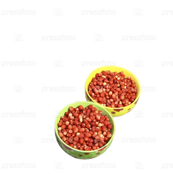 Две миски с клубникой и земляникой на белом фоне
