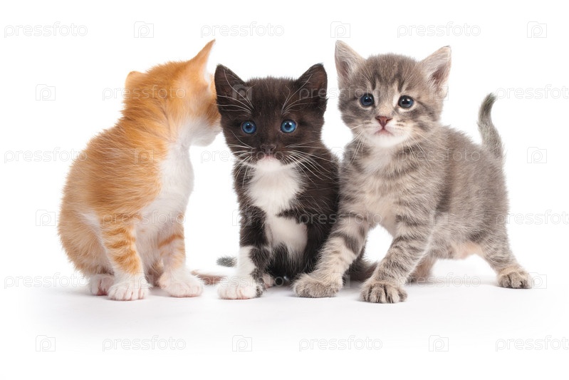 Три котенка, изолированные на белом фоне