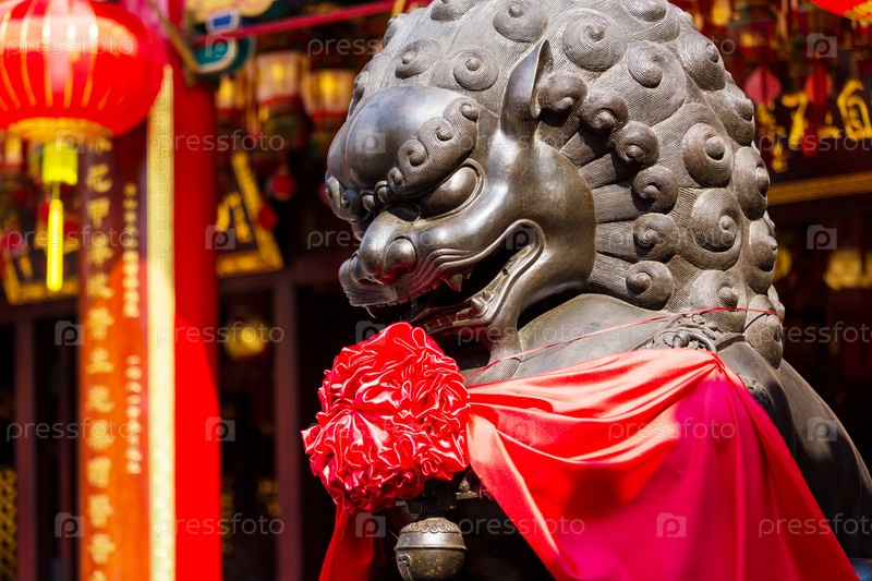 Статуя льва перед китайским храмом