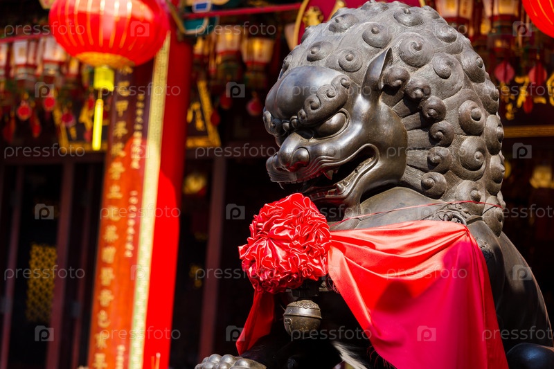 Статуя льва перед китайским храмом