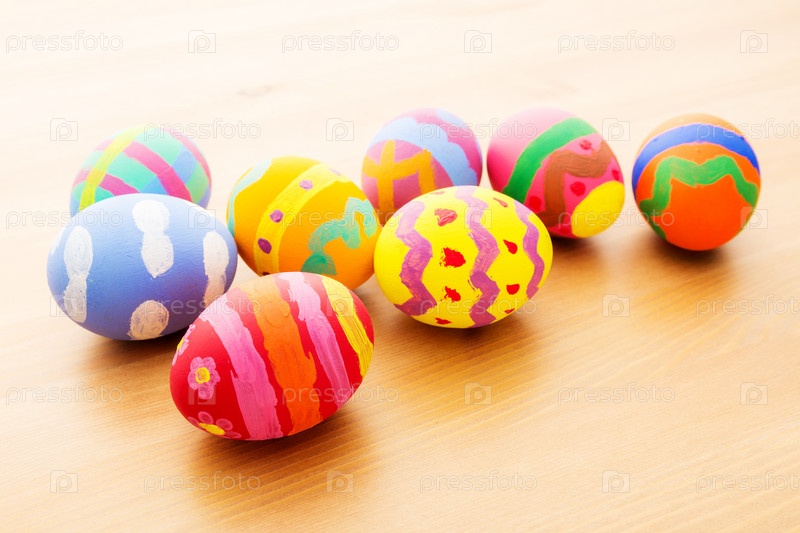 Красочные пасхальные яйца на деревянном фоне