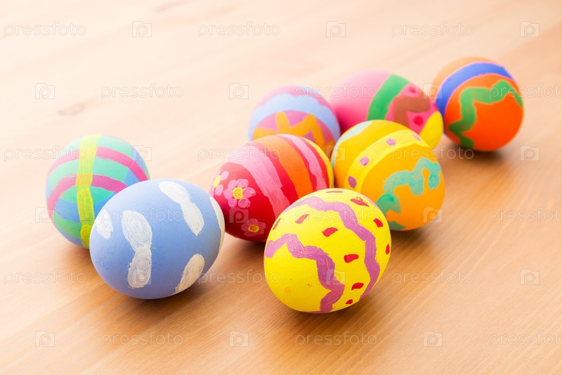 Красочные пасхальные яйца на деревянном фоне