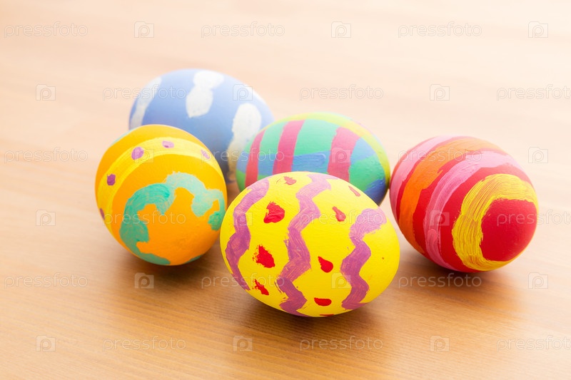 Красочные пасхальные яйца на деревянном фоне