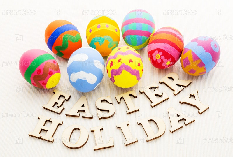 Пасхальные яйца и деревянный текст