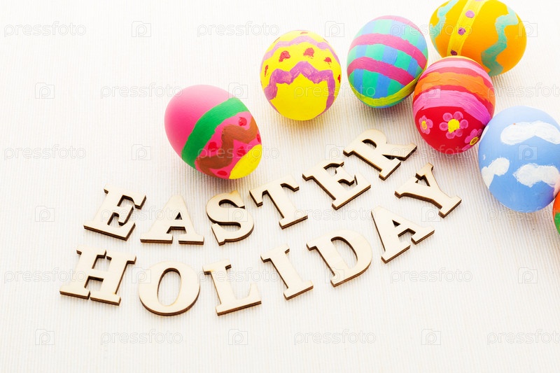 Пасхальные яйца и деревянный текст