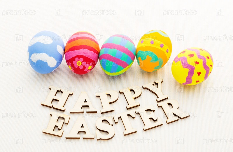 Пасхальные яйца и деревянный текст