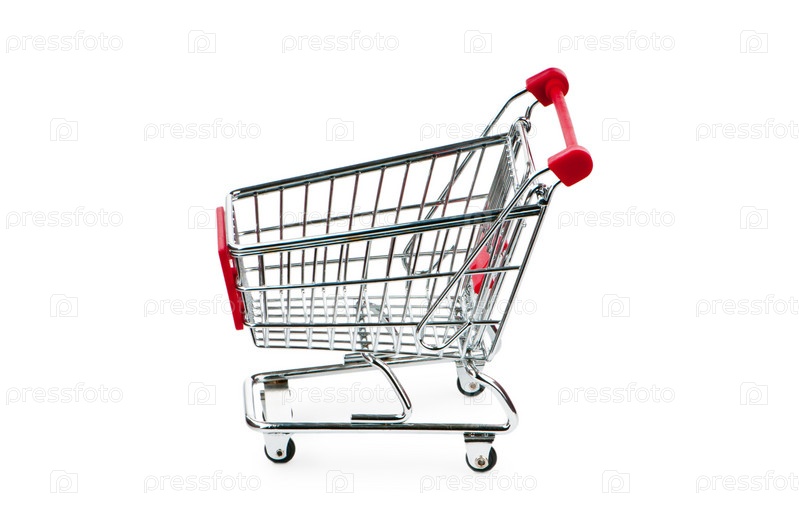 Магазинная тележка для покупок на белом фоне