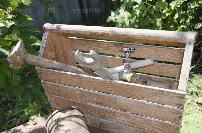 Деревянный ящик с инструментами