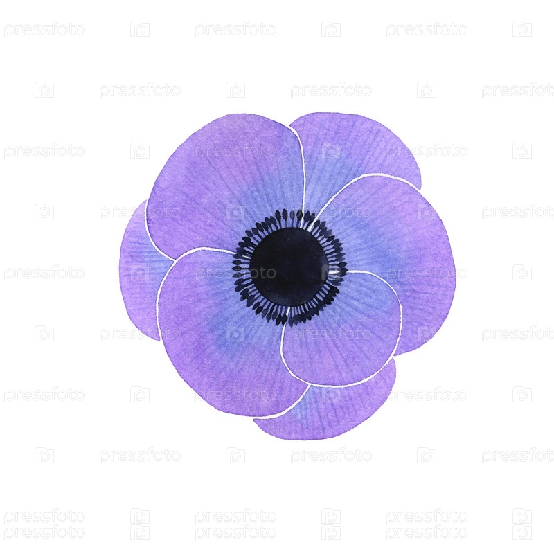 Анемон. Акварельная иллюстрация на белом фоне