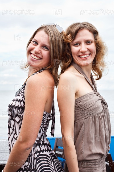 Две симпатичные девушки на фоне моря