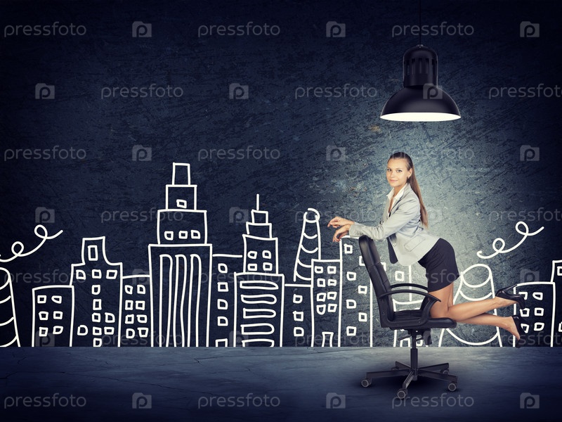 Бизнес-леди на фоне нарисованного города
