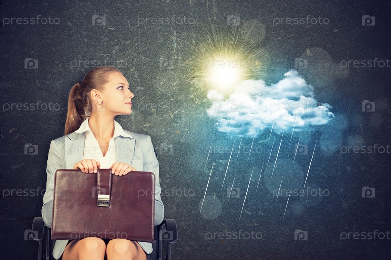 Бизнес-леди на фоне иллюстрации дождевой тучи