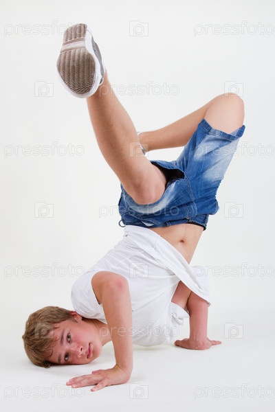 Подросток танцует брейк-данс