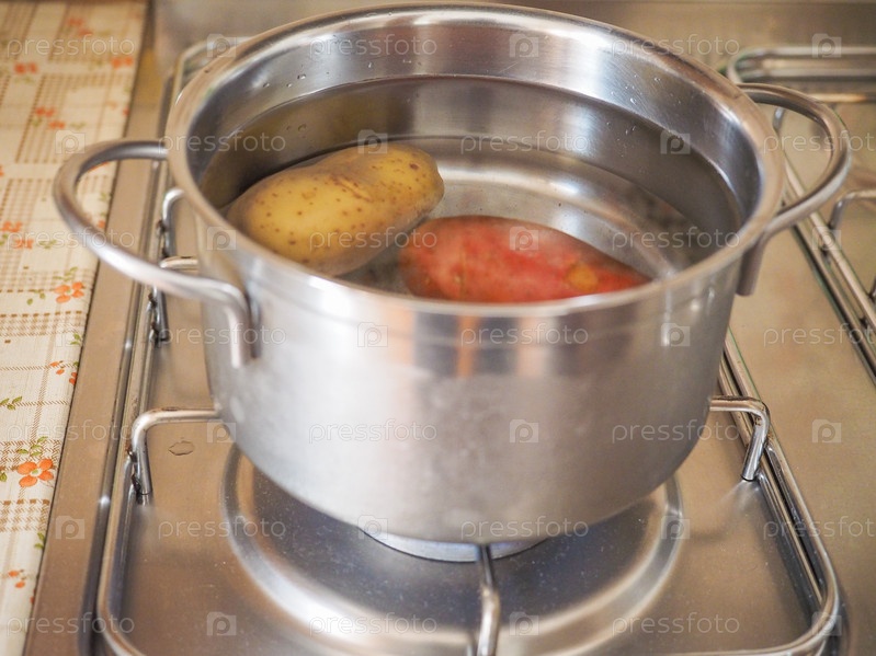 Кастрюля с картофелем на газовой плите