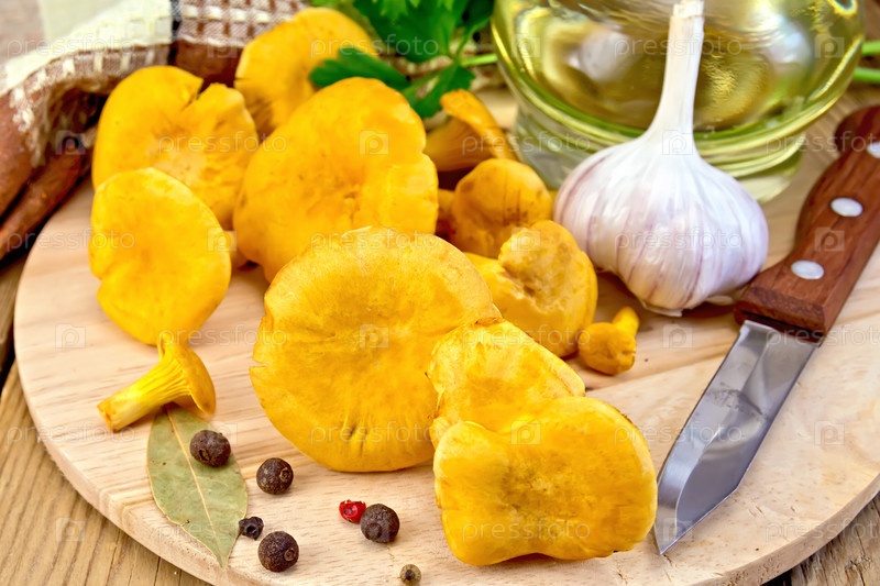 Лисички со специями и маслом на доске