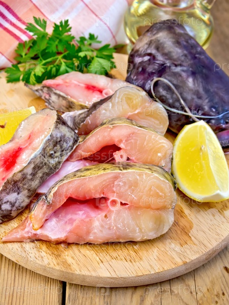 Сом с лимоном на доске
