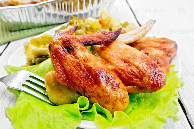 Куриные крылышки с салатом в тарелке