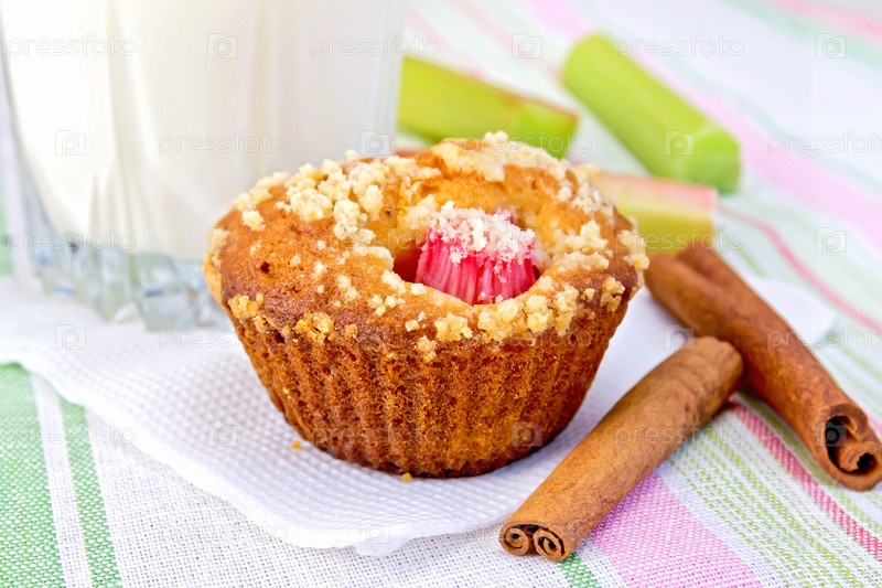 Кекс с ревенем и молоком на льняной салфетке