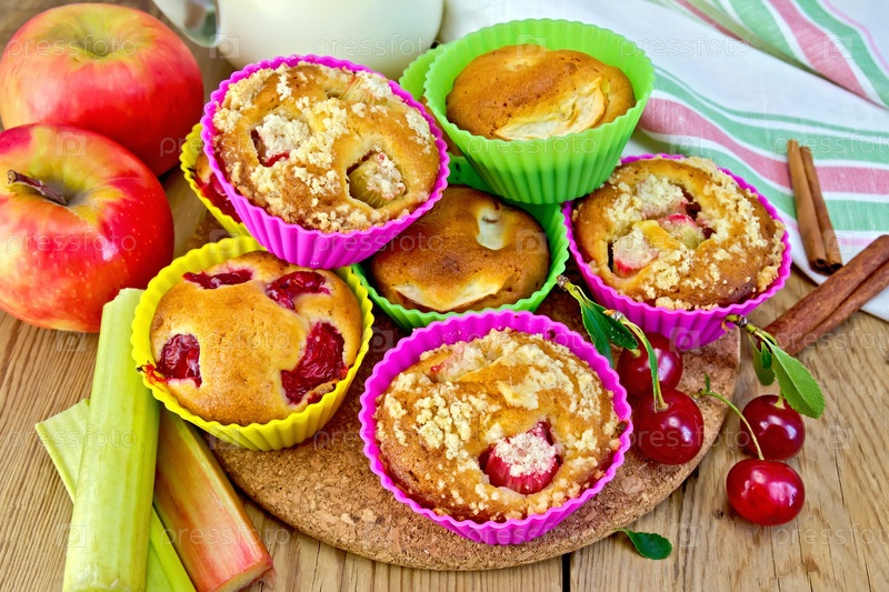 Кексы с ревенем и вишней в силиконовых формочках