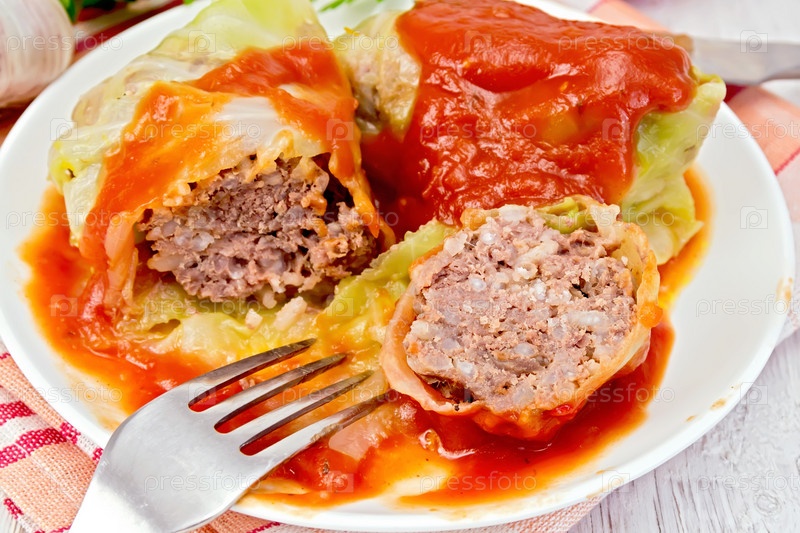 Голубцы с томатным соусом на салфетке