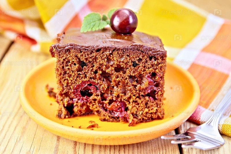 Шоколадный пирог с вишней и салфетка