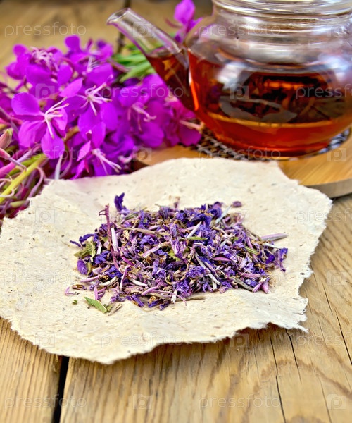 Сушеный кипрей и чайник на доске