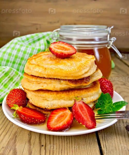 Оладьи с клубникой и медом