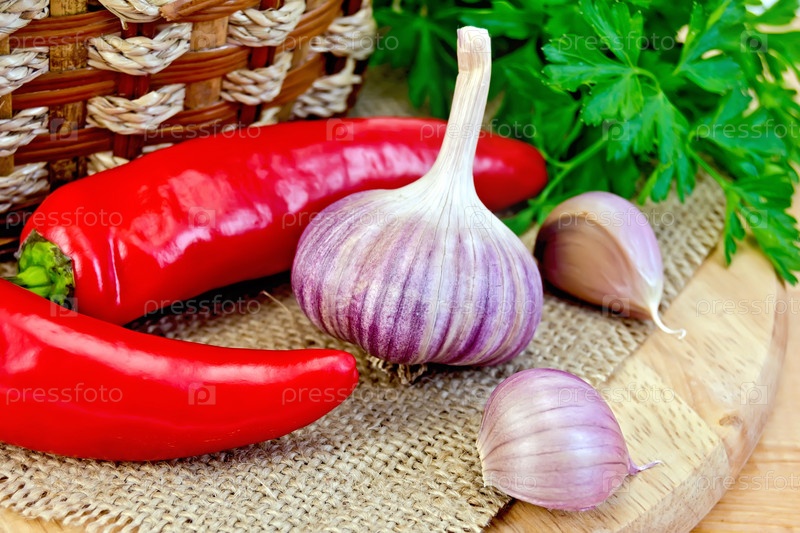 Чеснок с острым красным перцем на доске