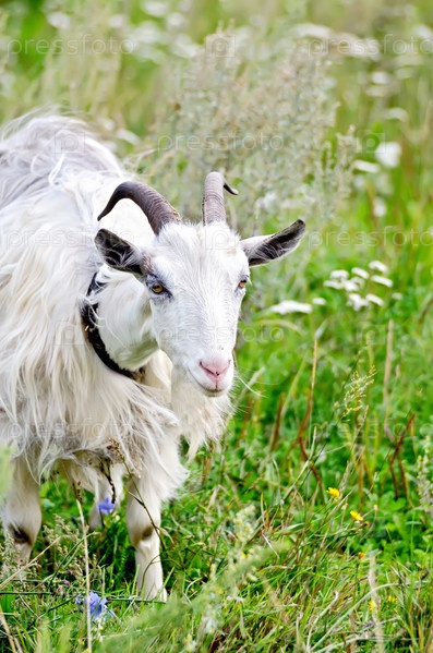 Белая коза в траве