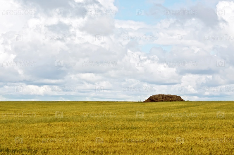 Стог сена на поле зерновых