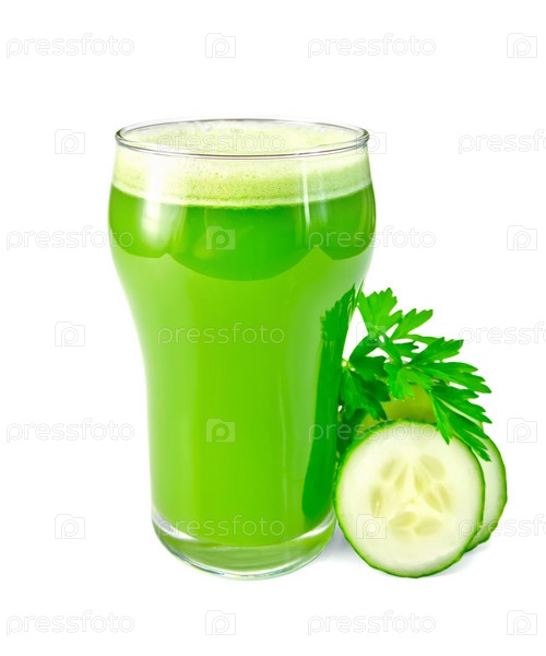 Огуречный сок в стакане с огурцом