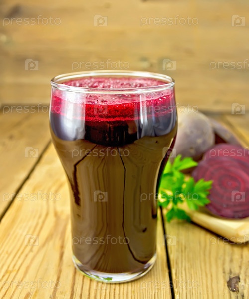 Свекольный сок в стакане на доске