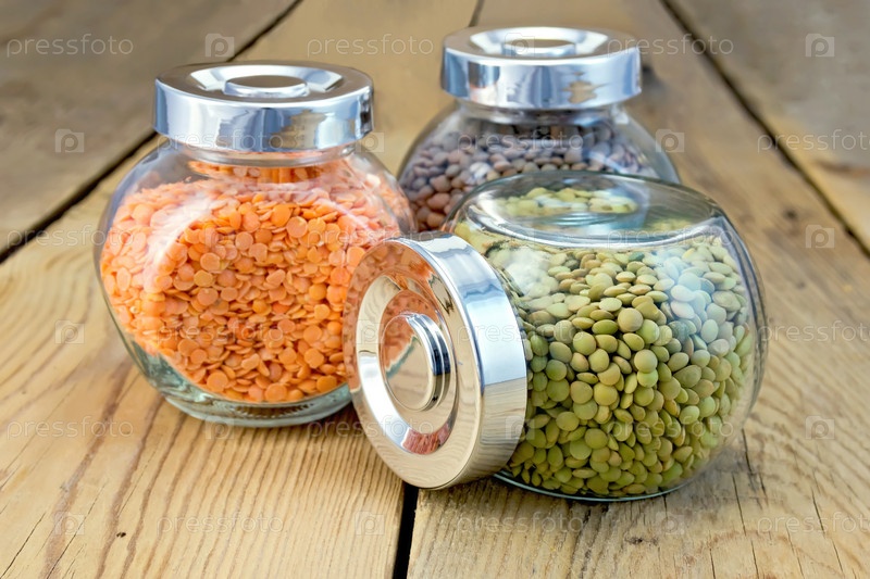 Чечевица в трех банках на доске