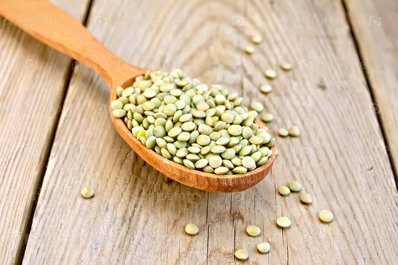 Зеленая чечевица в ложке