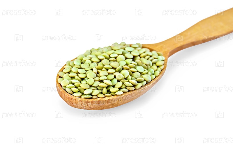 Зеленая чечевица в ложке