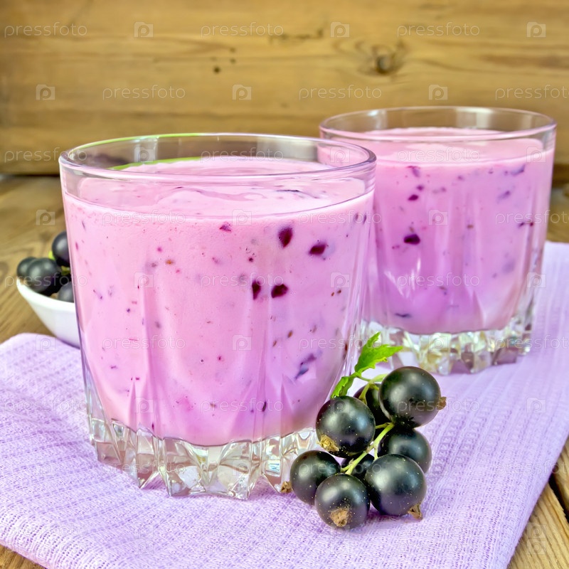 Молочный коктейль с черной смородиной на салфетке