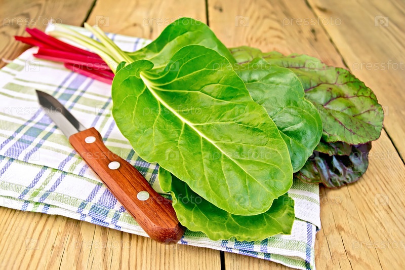 Мангольд с ножом на салфетке
