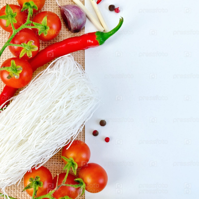 Рамка из фунчозы и помидоров с бумагой