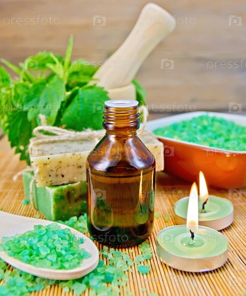 Масло и свечи с крапивой в ступке