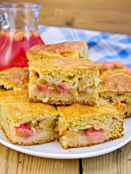 Пирог с яблоком и ревенем в тарелке