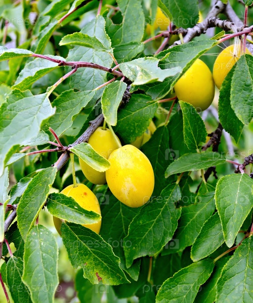Желтые сливы на ветке дерева