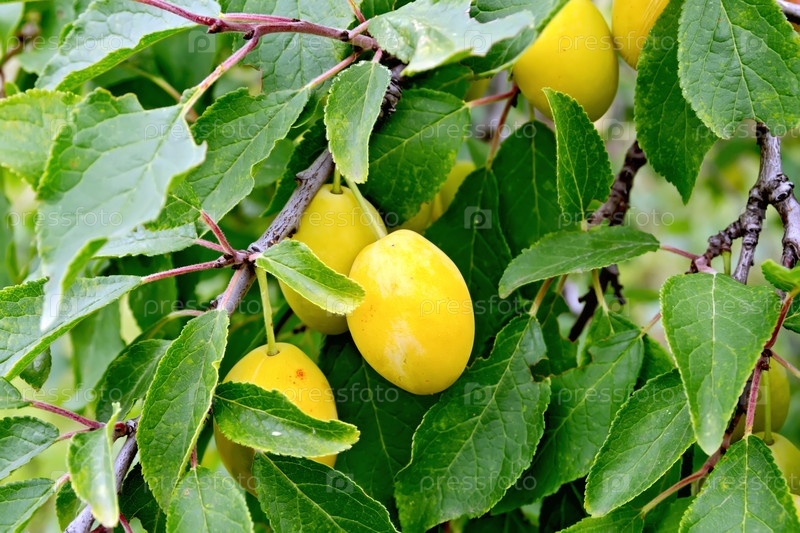 Желтые сливы на ветке