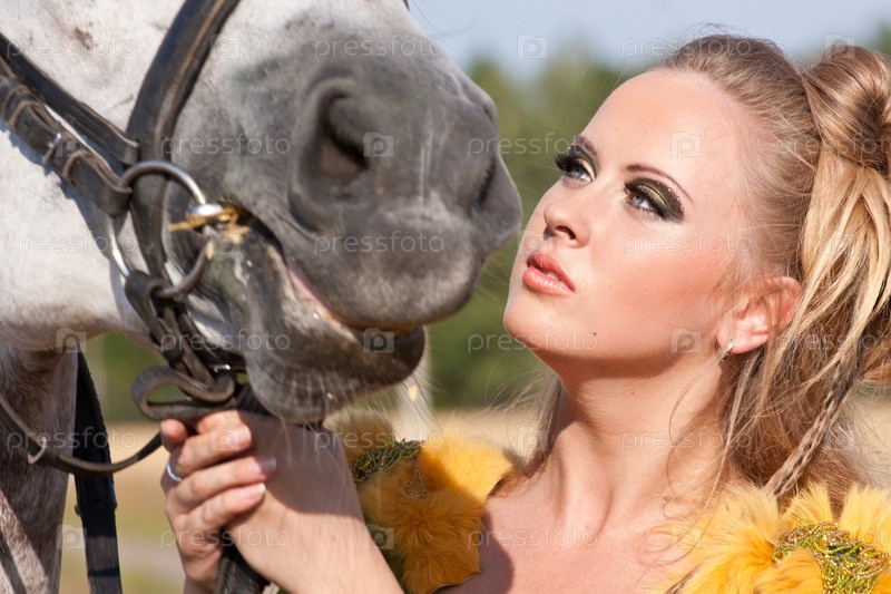 Девушка и лошадь в поле